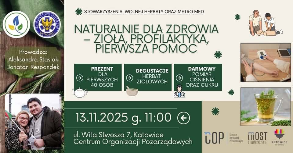 W Katowicach odbędzie się wyjątkowe wydarzenie edukacyjne pod hasłem „Naturalne dla zdrowia”, które połączy profilaktykę zdrowotną, fitoterapię oraz ekologiczne podejście Zero Waste. W warsztatach wezmą udział mieszkańcy w różnym wieku – dzieci, młodzież, dorośli i seniorzy – którzy chcą dowiedzieć się, jak w naturalny sposób wspierać organizm i dbać o zdrowie z pomocą roślin.