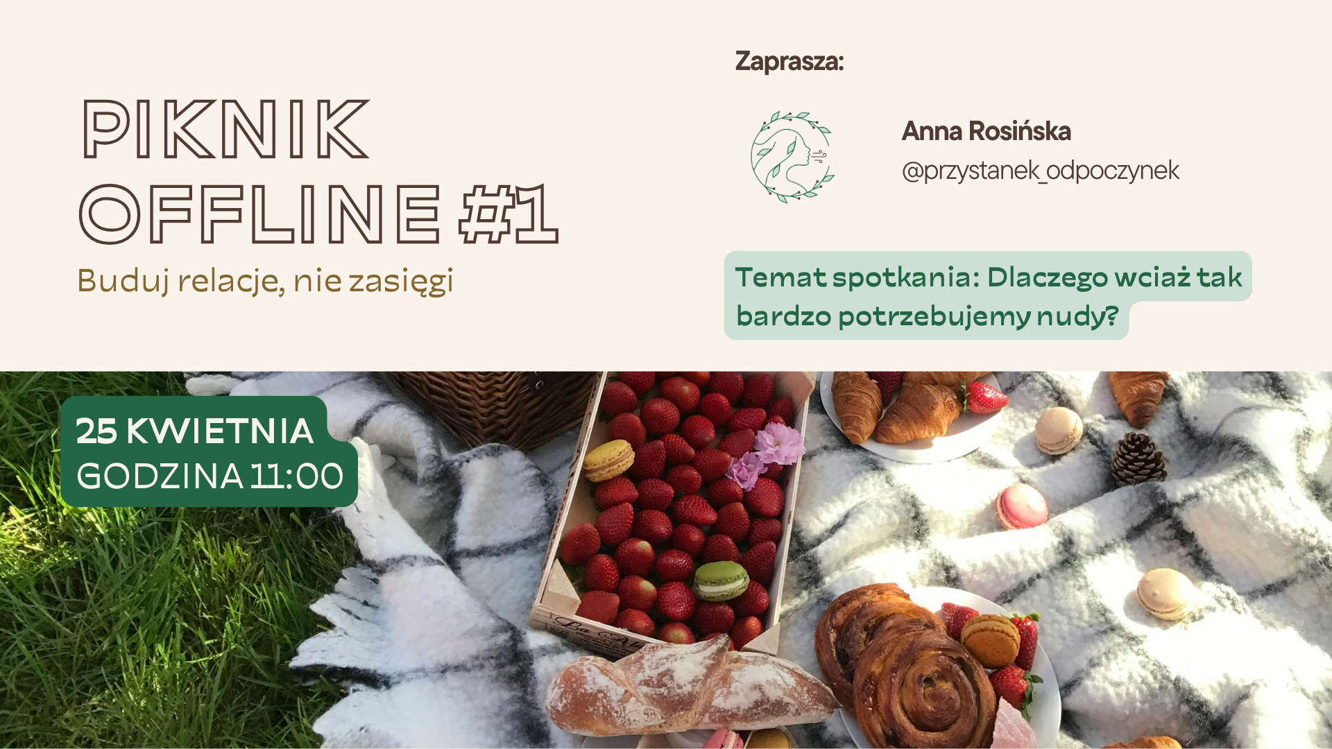 Weź ze sobą koc, książkę, rękodzieło, kartkę do rysowania albo domowe ciacho do przegryzienia podczas liczenia chmur na niebie i dołącz do nas! – zachęca organizatorka spotkania, Ania Rosińska, twórczyni projektu Przystanek Odpoczynek.